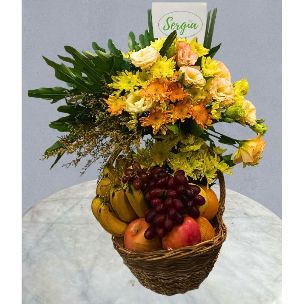 4 pieces of Mangoes, Oranges, Pears, Half a Kilo of Bananas and Half a Kilo of Grapes