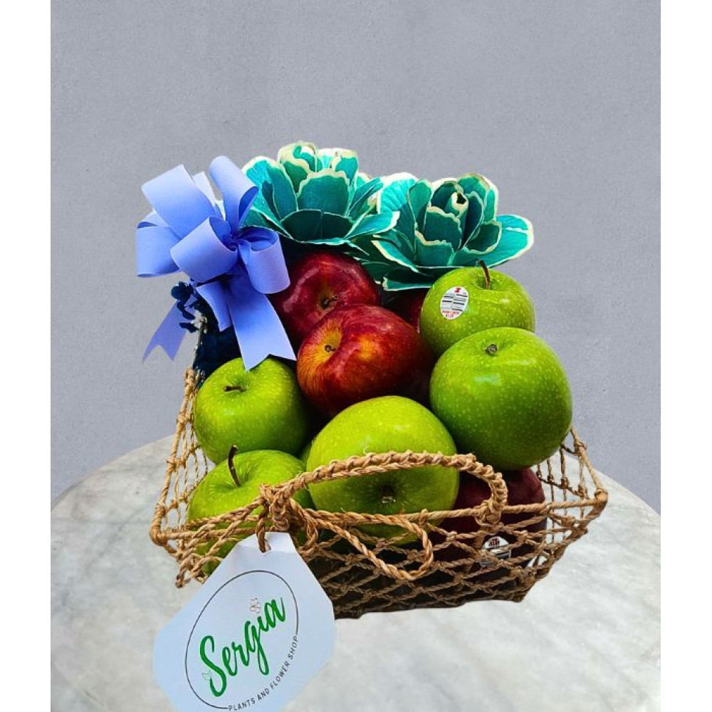 combination of red and green apples. Beautifully arranged with a minimal basket